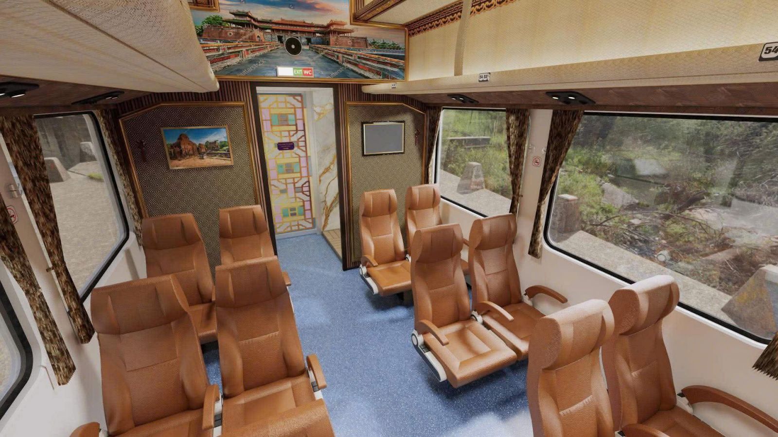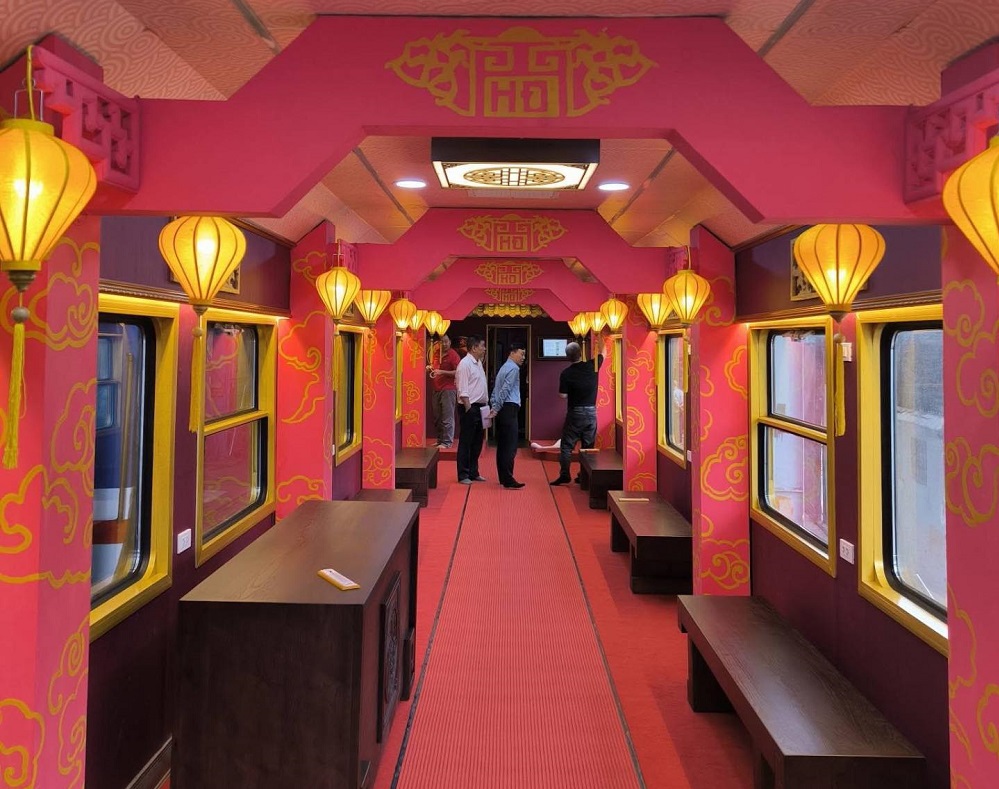 Khác với những toa tàu truyền thống, "Hành trình Di sản" trên tuyến tàu Huế - Đà Nẵng phiên bản mới mang đến diện mạo đầy ấn tượng: